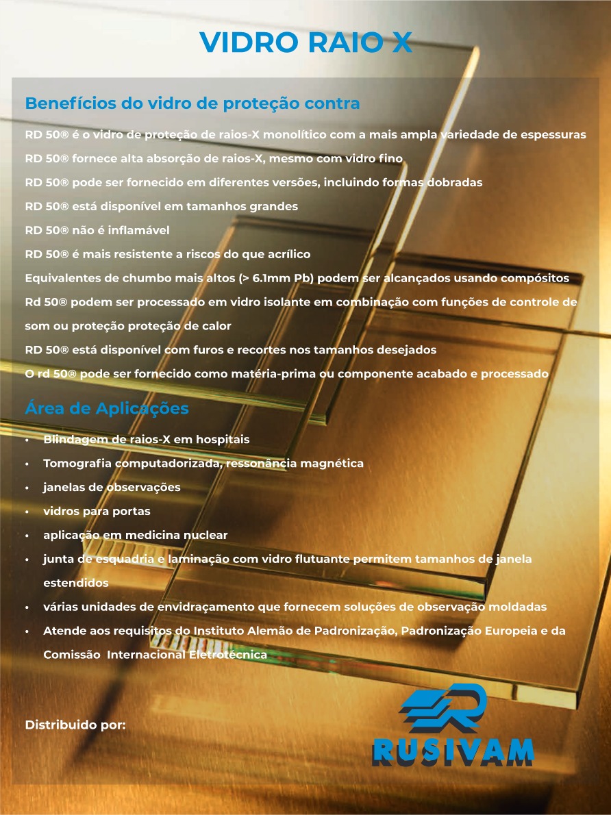 RD 50® é o vidro de proteção de raios-X monolítico com a mais ampla variedade de espessuras